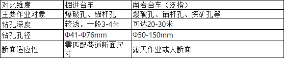 简单来说:掘进台车 ⊂ 凿岩台车,两者是包含关系,而非对立关系。