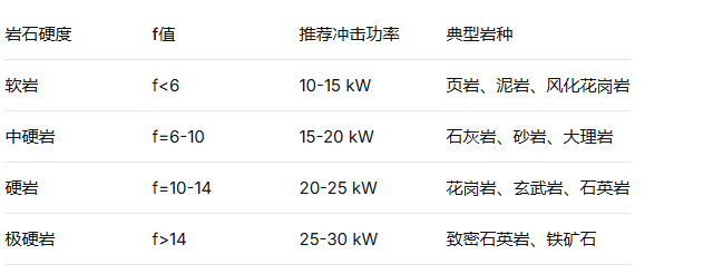 举例: 你打的岩石是石灰岩(f≈8),选15-20 kW足够。如果是花岗岩(f≈12),至少20 kW起步。