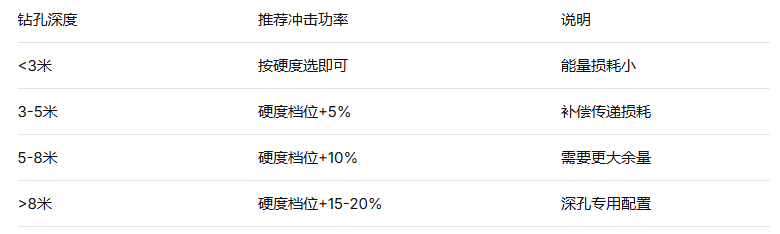 合理的做法是按当前项目的最硬岩层选,往上留10%-20%余量。不要为了“万一”选太大,因为大部分项目95%的时间打的是常规岩层。如果确实可能遇到极硬岩,可以考虑可调冲击功率机型——平时用小功率,遇到硬岩时调大。