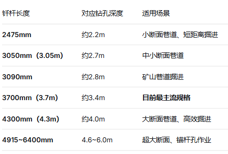 掘进台车的钎杆长度有明确的系列化规格,以下是在售设备和实际工程中常见的型号: